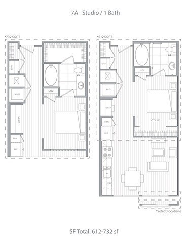 Studio, 1 Bath, 612-732 sq ftLargest StudioThis is the largest Studio at this PropertyModel Gallery