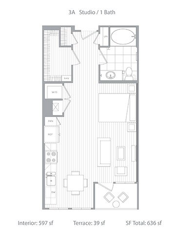 A5 - Floorplan 1 Apartment Unit: 231Apartment Model: A5$2,647Studio, 1 Bath, 636 sq ftAvailable December 11, 2025Floorplan A9