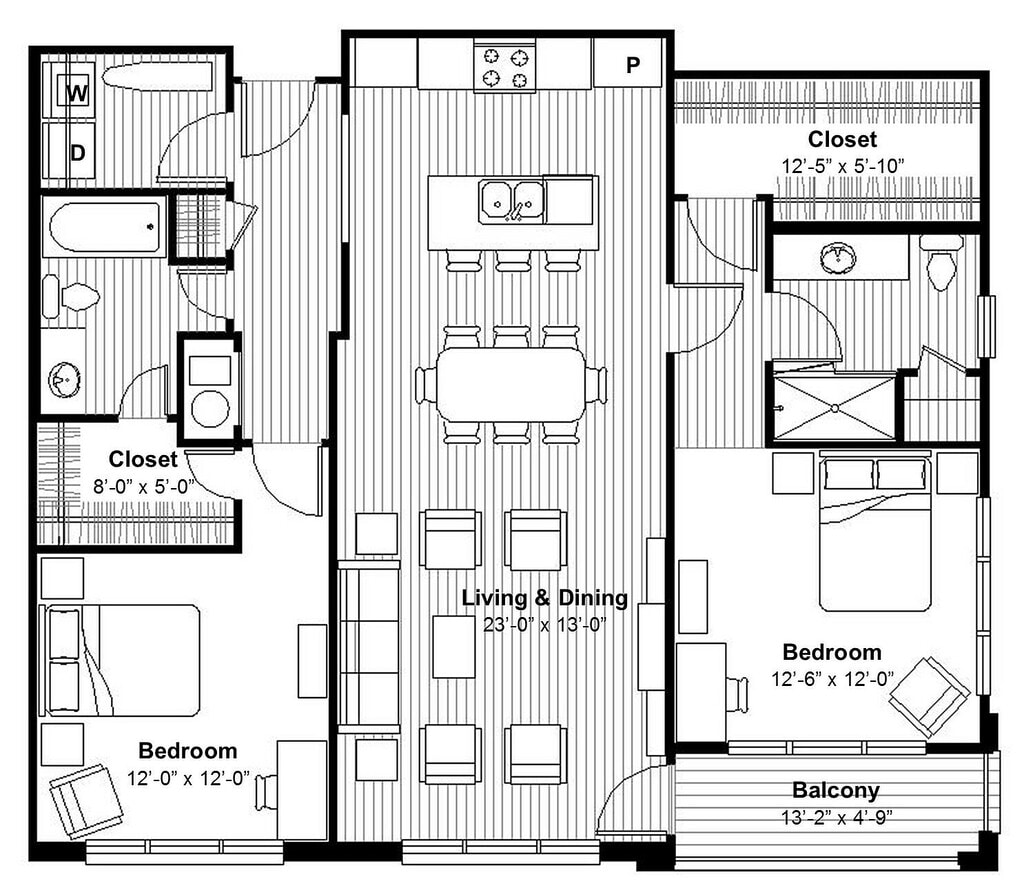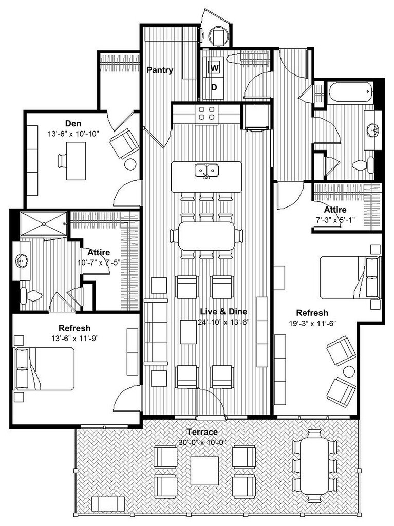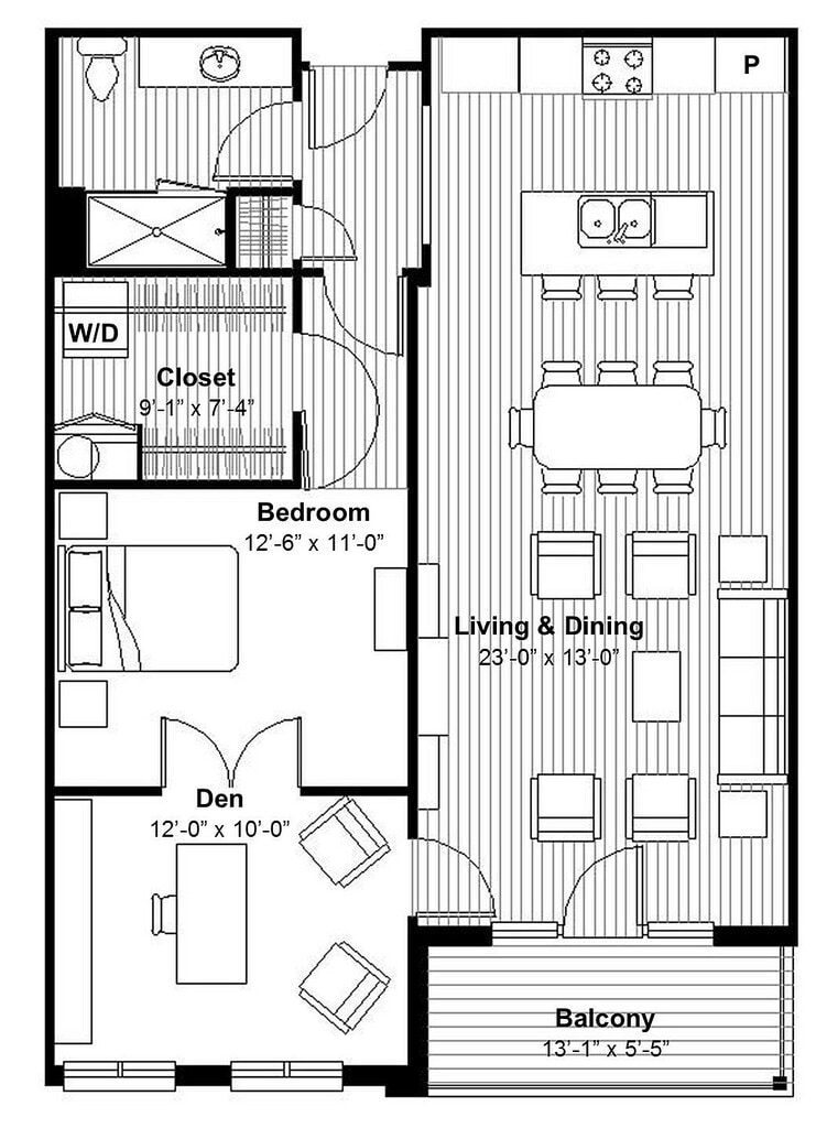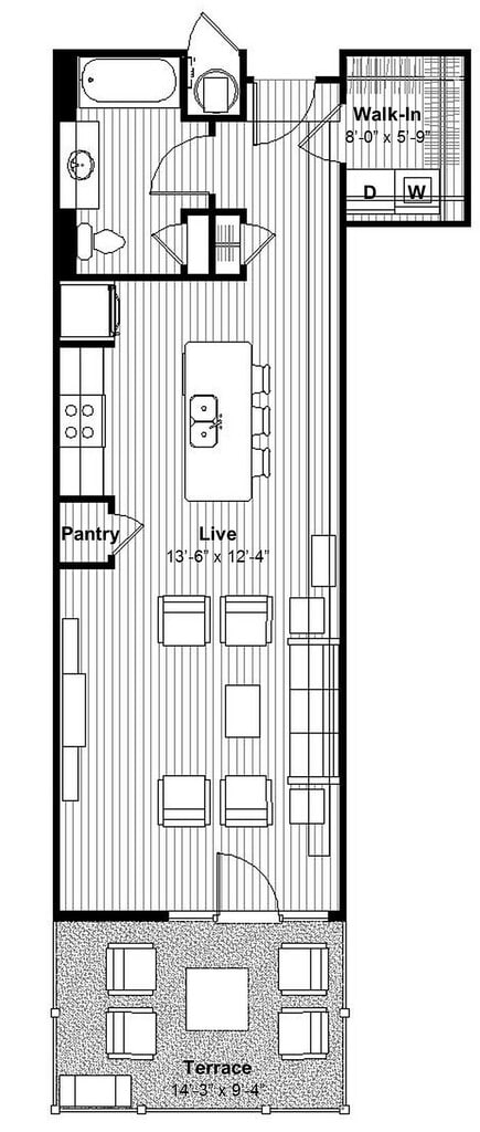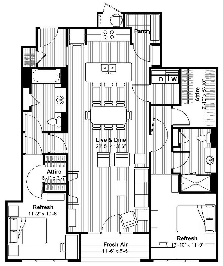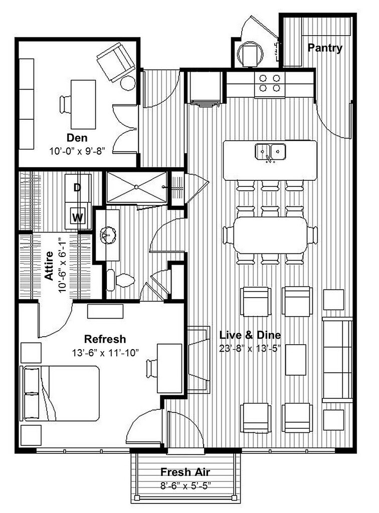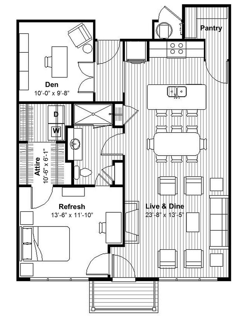 Studio, 1 Bath, 607 sq ftAvailable NowModel Gallery