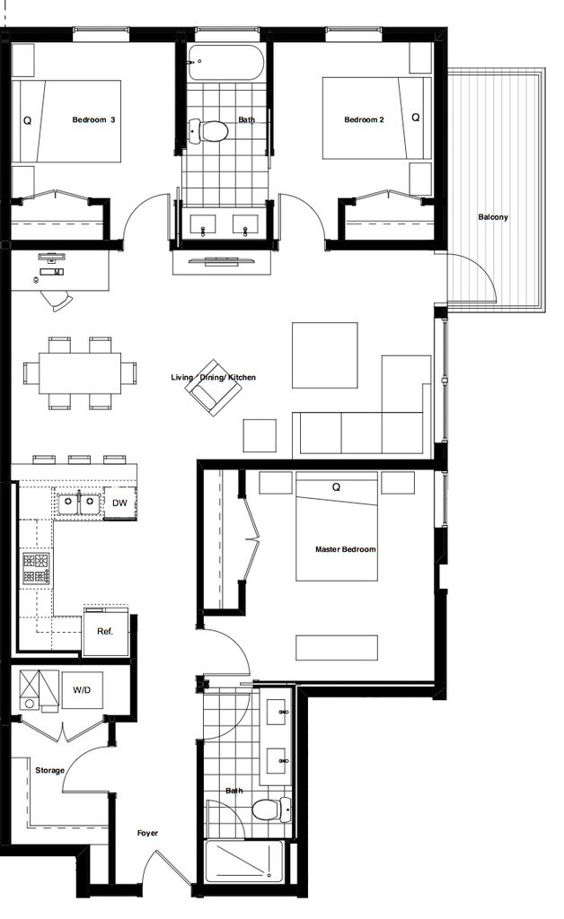 9 - 2x2 - Floorplan 1 3 Bedrooms