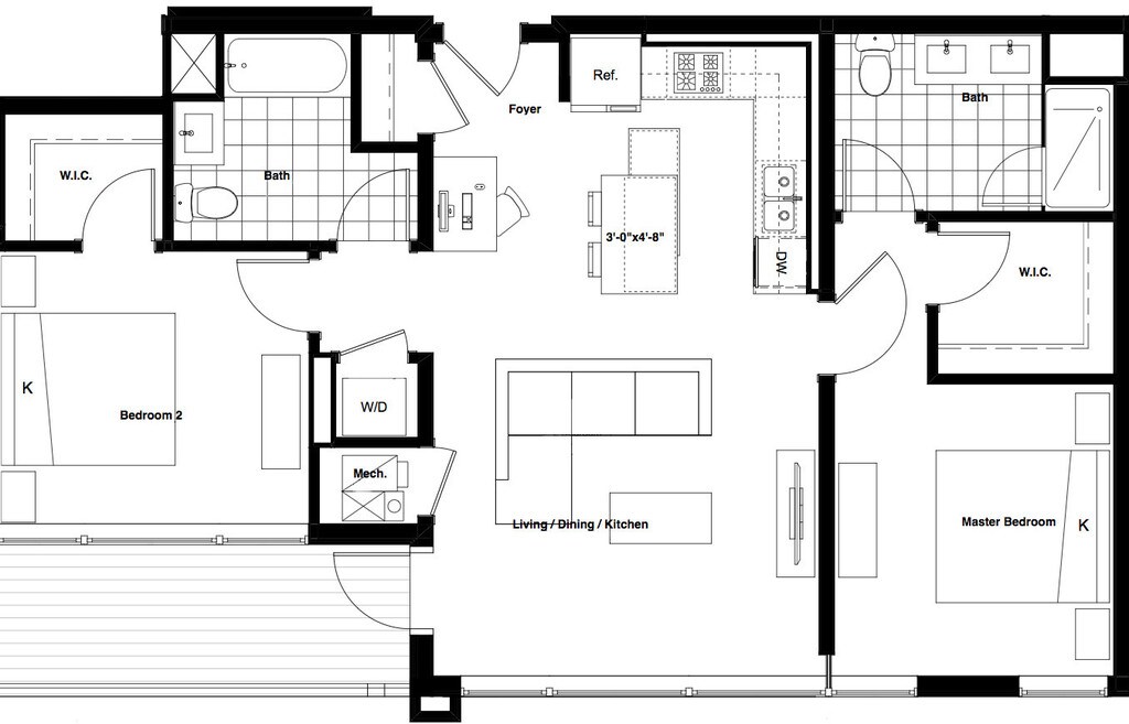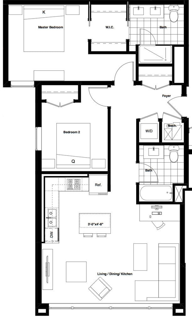 2 - 1x1 - Floorplan 1 2 Bedrooms