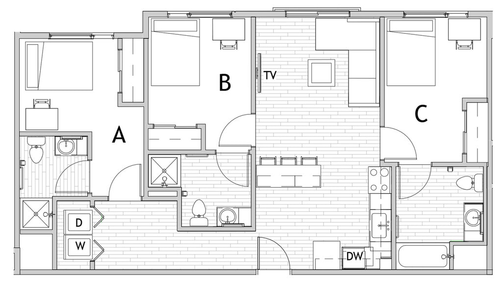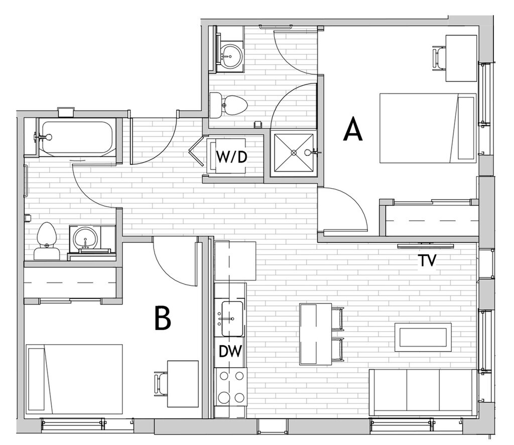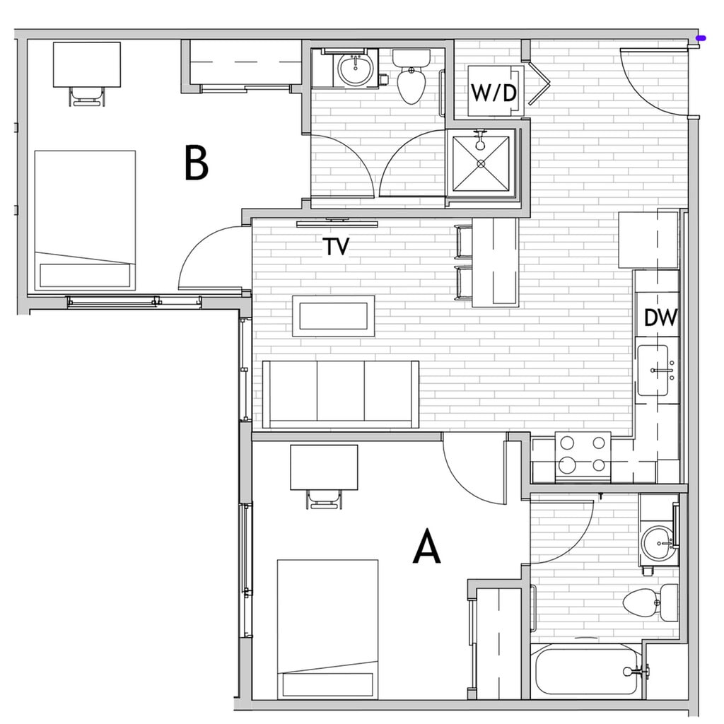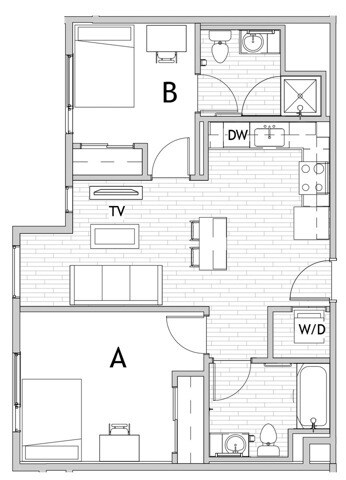 Apartment Model: 2x22 Bedroom, 2 Bath, 708-720 sq ftUnavailableFloorplansPhotos![]()