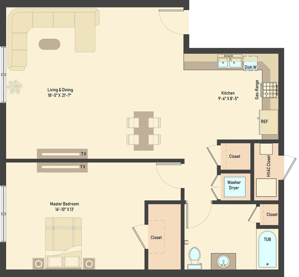 1 Bed, 1 Bath, 992 sq ftAvailable NowModel Gallery