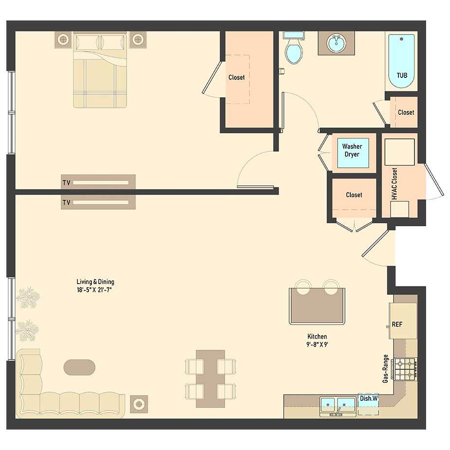 1 Bed, 1 Bath, 723-992 sq ftAvailable NowModel Gallery