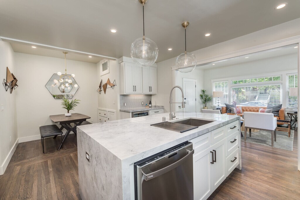 This unique collection of boutique apartment homes blends historic charm with timeless design and an unsurpassed quality of finishes. Luxury Spaces represents the pinnacle of design-inspired modern living. Thoughtfully designed interiors utilize every inch of space and high-end finishes can be seen throughout the homes. Open floor plans include large living areas, gourmet kitchens, comfortable sleeping rooms, spacious closets, and elegant bathrooms. Most kitchens have large natural stone islands with bar seating and integrated wine refrigerator. Bathrooms have double or single vanities with either walk-in showers or a bathtub / shower combo. All are finished with frameless glass shower enclosures as well as marble / natural stone walls from the floor to ceiling. Striking mirrors and unique pendant lighting are just some of the beautiful accents seen throughout the spaces. Many homes offer private outdoor spaces including paver patios, firepits, lush landscaping, and low-maintenance grass. A washer / dryer is included in the homes and the spaces are pet friendly. Whether gathering with friends and family around the central island to enjoy a drink from the wine refrigerator, having an alfresco morning coffee in your peaceful outdoor retreat, or enjoying a cozy evening by the fire pit, Luxury Spaces is a space to call home. Luxury Spaces - Midtown is situated in the heart of the amenity-rich area of Midtown Sacramento. Walking or biking distance to several local markets, restaurants, and shops including Market 5-One-5, Burgers and Brew, Fox & Goose, Dad’s, Ironhorse Tavern, Shady Lady, Safeway, South, West Elm, Bonobos, Warby Parker, Title Boxing, Pure Barre, Shake Shack, Device Brewing, Mendocino Farms, Zocalo, Paesanos, Beast & Bounty, Milk Money, Philz Coffee, Starbucks, Old Soul Coffee, Temple Coffee, Insight Coffee, Pressed Juicery, Nekter Juice, Pushkin’s Bakery, Federalist Public House, Lowbrau, Magpie, Dos Coyotes, and much, much more. Midtown is easily accessible from light rail and all major highways and is blocks away from Fremont Park, Truitt Bark Park, Sutter’s Fort, and the State Capitol. The Golden 1 Center and DOCO, Sutter Health Park, and Crocker Art Museum are also a short bike, scooter, walk or Uber ride away.