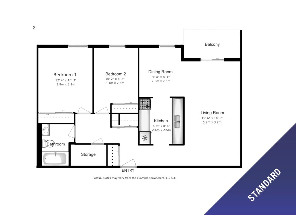 1 Bed 1 Bath A - Floorplan 2 2 Bedrooms
