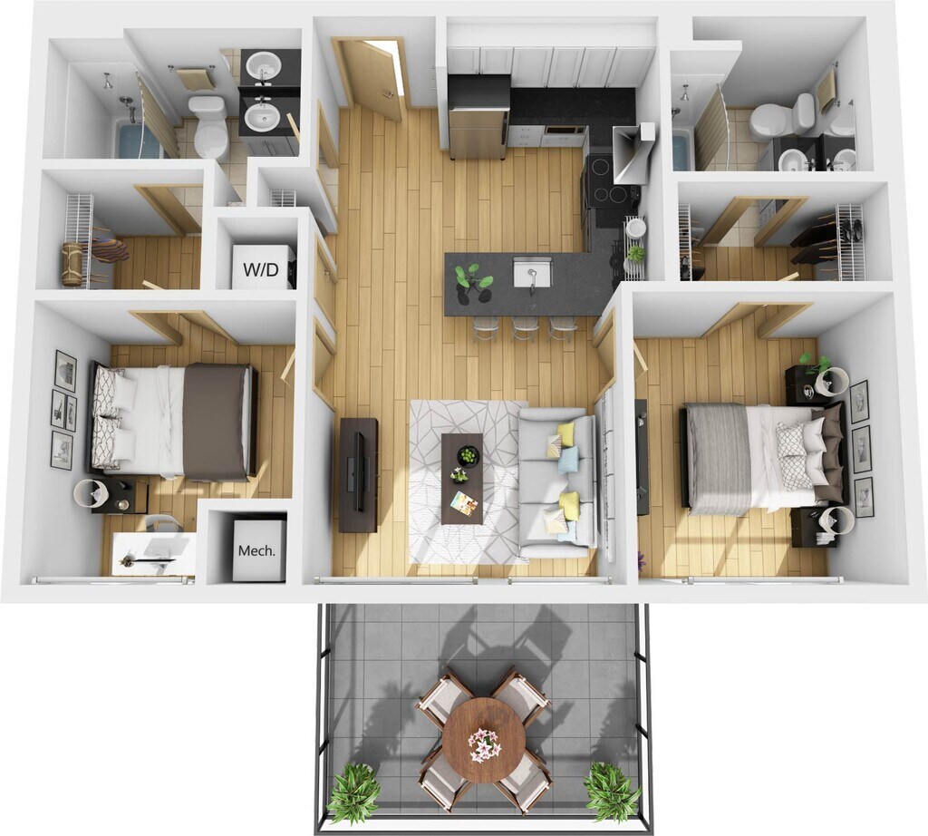 2 Beds, 2 Baths, 956 sq ftModel Gallery