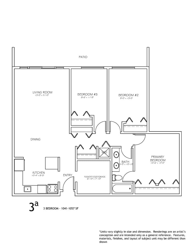3 BR 1 BA - Floorplan Apartment Unit: 66Apartment Model: 3 BR 1 BA$3,7003 Bedroom, 1 Bath, 1043 sq ftAvailable Now
