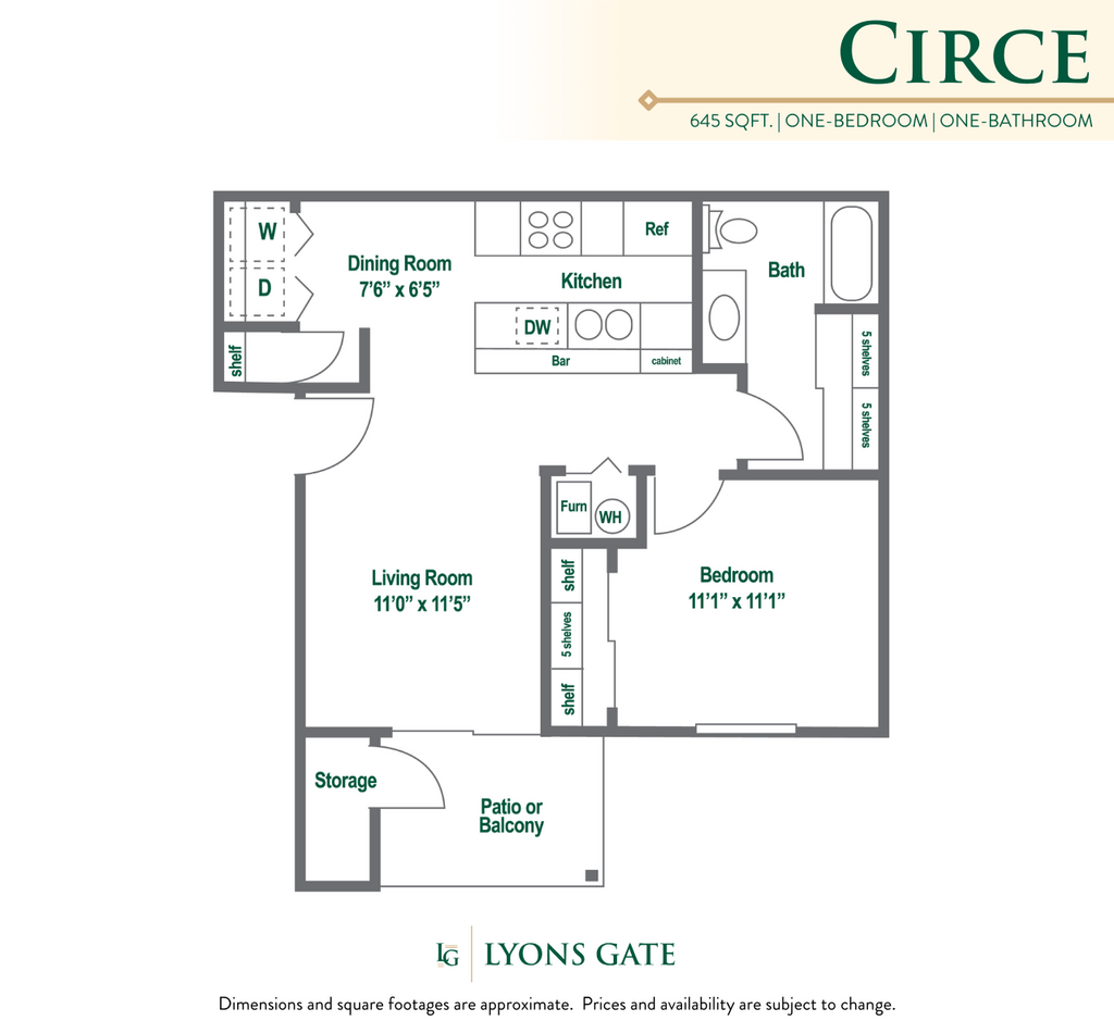 Circe - Floorplan 1 Apartment Unit: 613Apartment Model: Circe$9061 Bedroom, 1 Bath, 645 sq ftAvailable January 14, 2026Athena