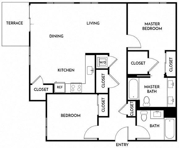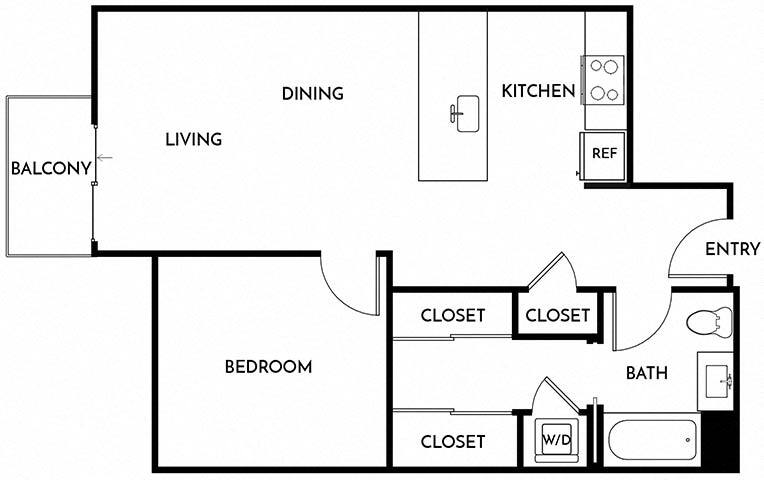 Apartment Model: A1 OpenFrom $2,614Studio, 1 Bath, 584 sq ftAvailable Now![]()