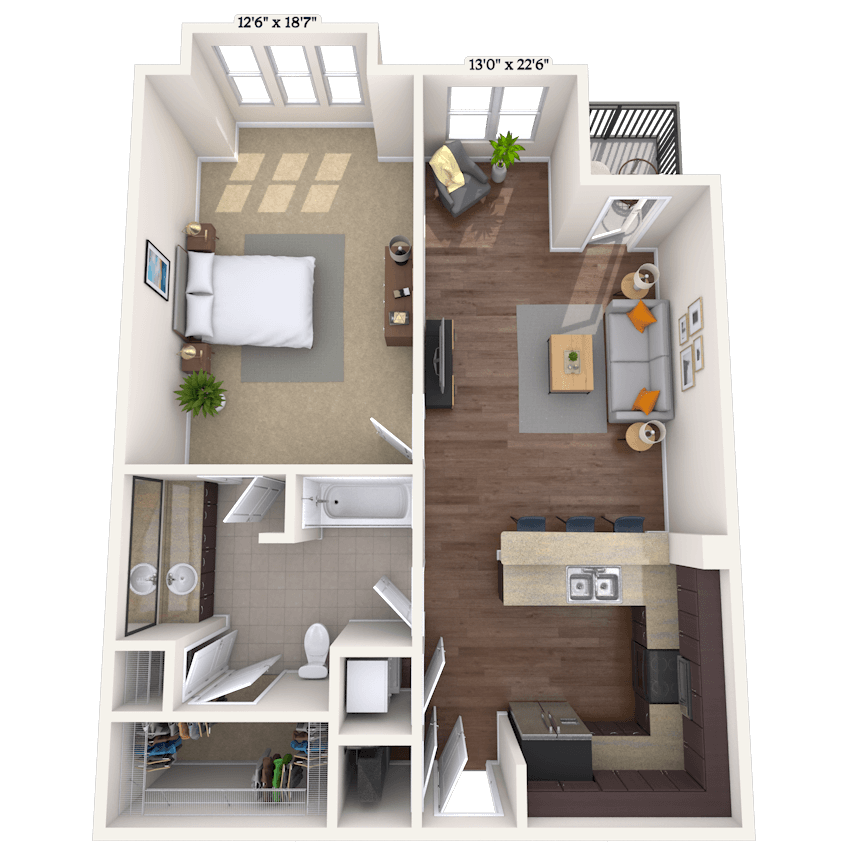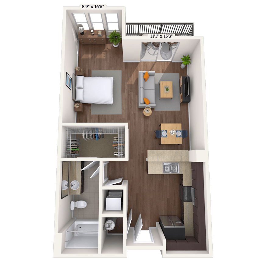 Studio, 1 Bath, 597-600 sq ftAvailable NowAvailability Details