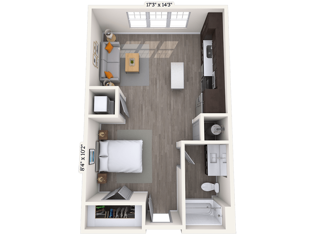 Studio, 1 Bath, 511 sq ftAvailable NowAvailability Details