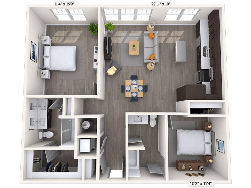 - Studio–2 Bedrooms