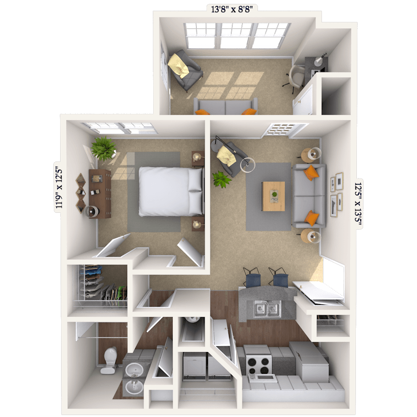 1 Bed, 1 Bath, 650-800 sq ftPlus FeesAvailable Mar 23Model Gallery