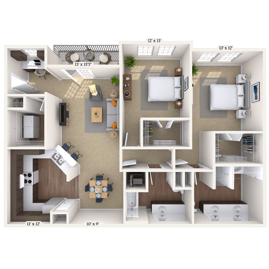 2 Beds, 2 Baths, 1316 sq ftAvailable NowCheapest 2 BedroomThis is the cheapest 2 Bedroom at this PropertyModel Gallery
