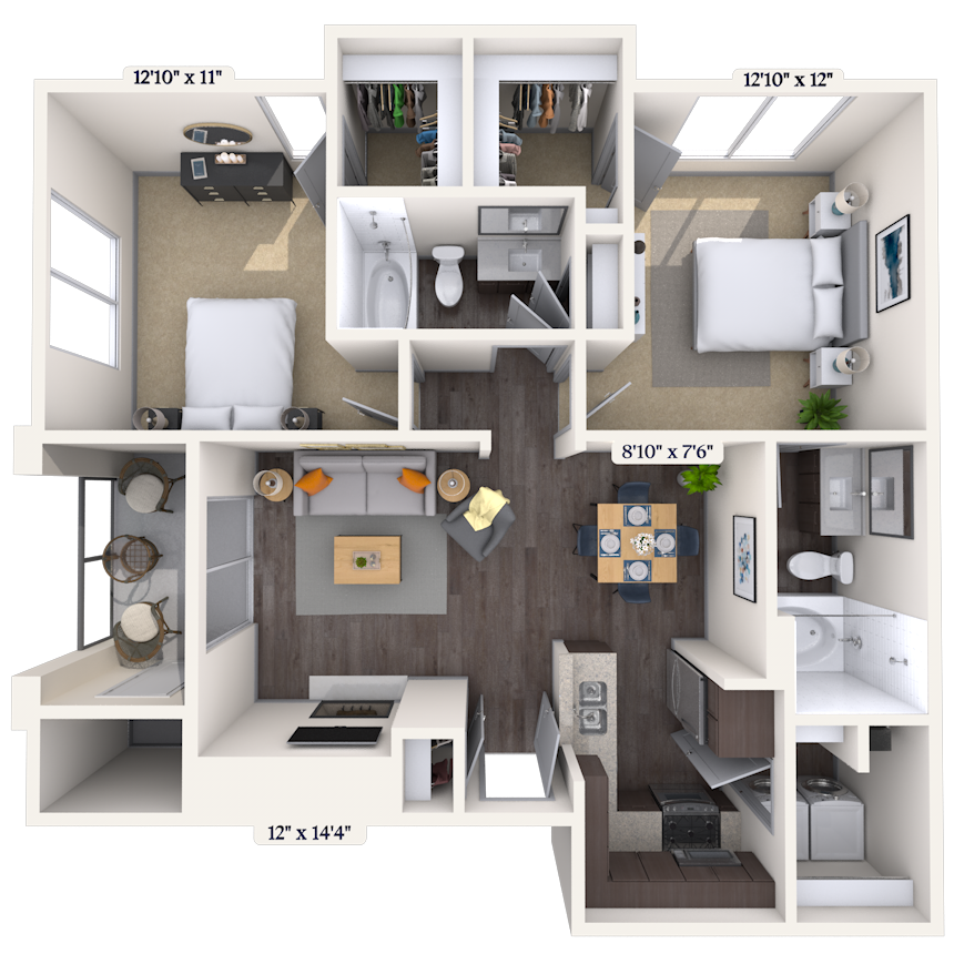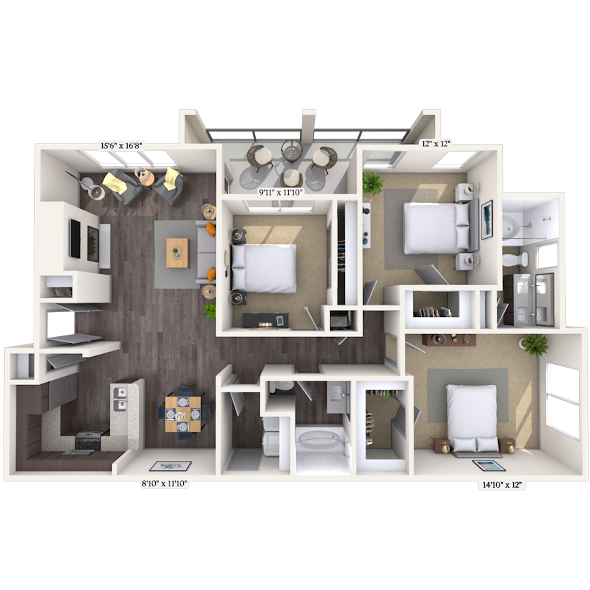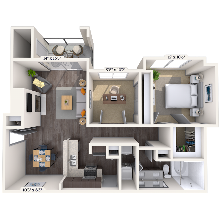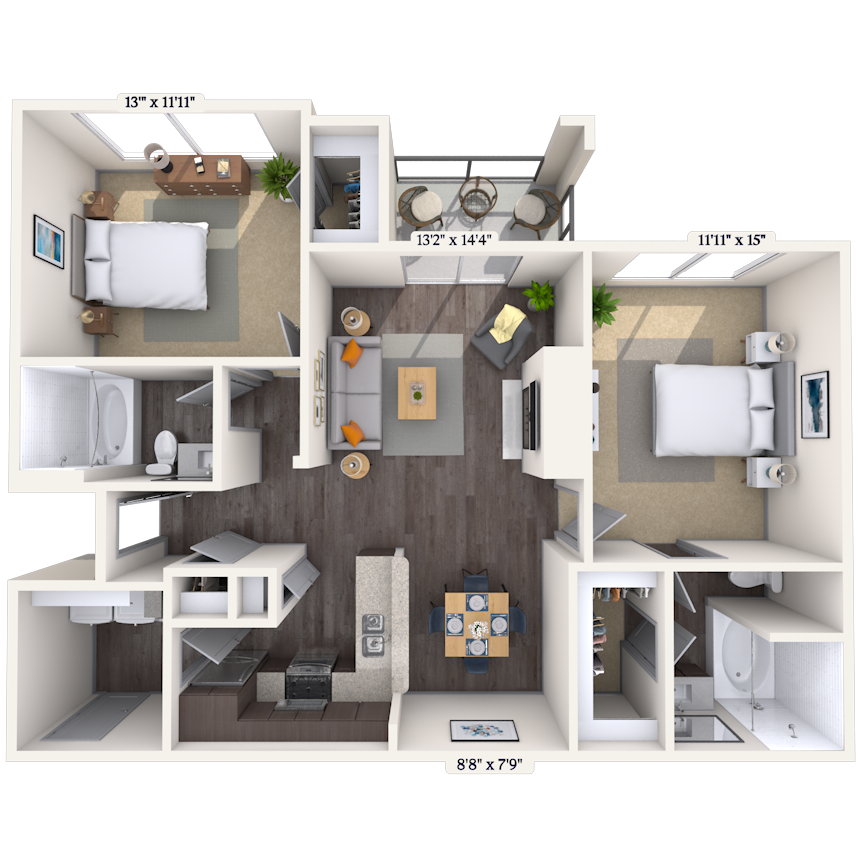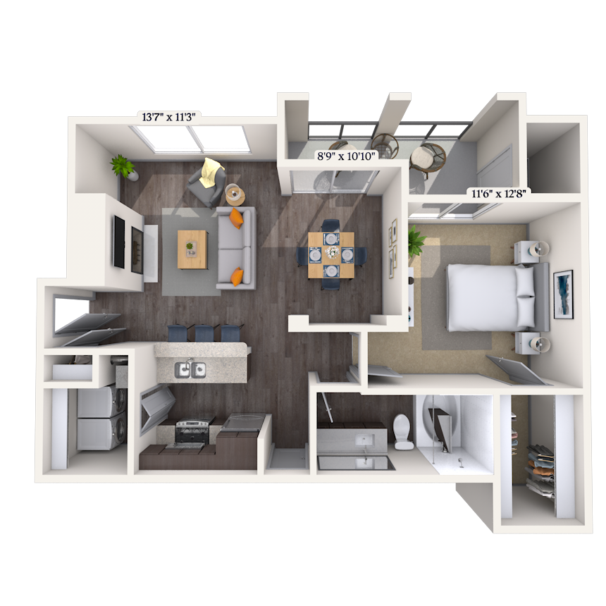 Apartment Model: 11FFrom $1,2631 Bedroom, 1 Bath, 844 sq ftAvailable Now![]()