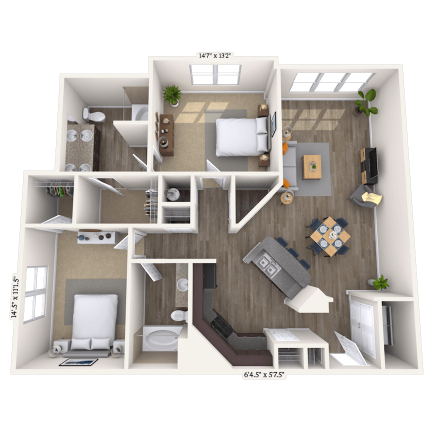 1 Bed, 1 Bath, 708 sq ftAvailable NowModel Gallery