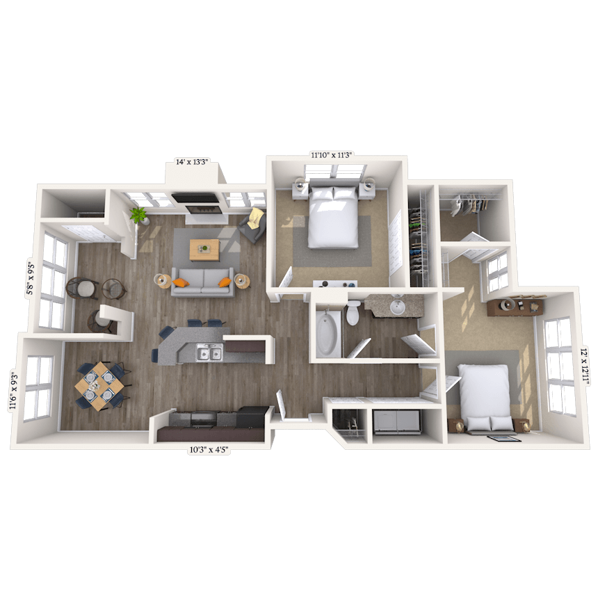 Unit: 010410 - Floorplan 1 Apartment Unit: 011310Apartment Model: 11B$1,4081 Bedroom, 1 Bath, 761 sq ftAvailable March 7, 2026![]()