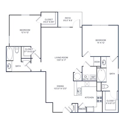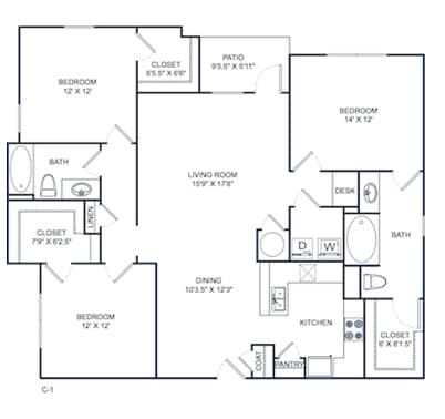 11B - Floorplan 2 Apartment Unit: 14105Apartment Model: 11B$1,1731 Bedroom, 1 Bath, 890 sq ftAvailable Now![]()