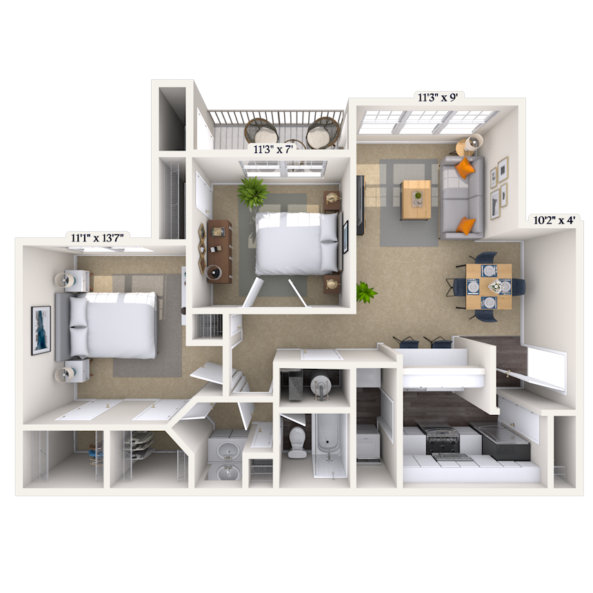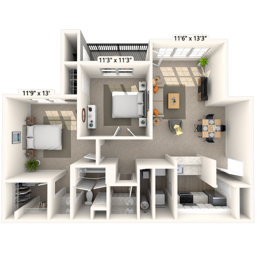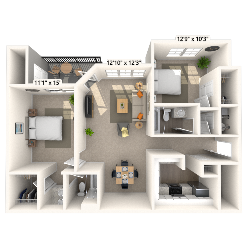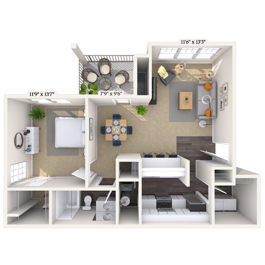 Apartment Model: Traditional 1x1 535 SFFrom $1,3601 Bedroom, 1 Bath, 535 sq ftAvailable Now![]()