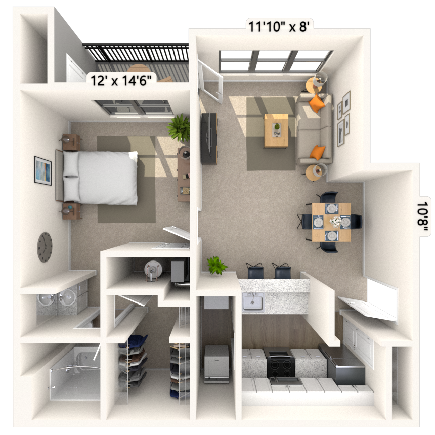 Studio, 1 Bath, 522-535 sq ftAvailable NowModel Gallery