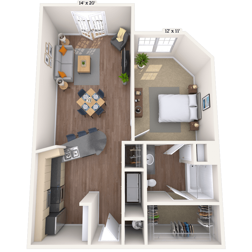 1 Bed, 1 Bath, 1157 sq ftAvailable NowLargest 1 BedroomThis is the largest 1 Bedroom at this PropertyModel Gallery