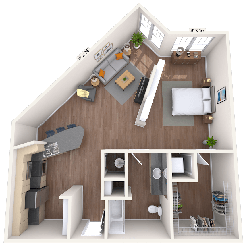 Studio, 1 Bath, 600 sq ftAvailable January 15, 2026Model Gallery
