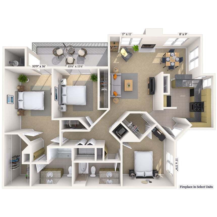 Apartment Unit: 012024Apartment Model: 11A$1,5881 Bedroom, 1 Bath, 870 sq ftAvailable Now![]()