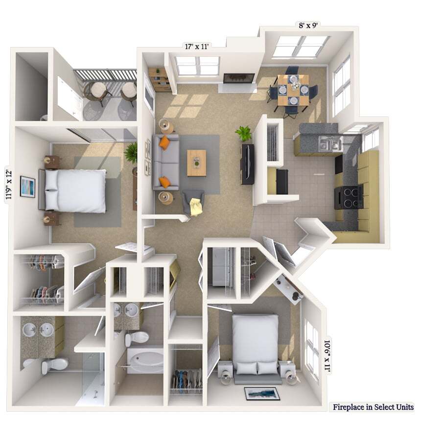 2 Beds, 2 Baths, 1075 sq ftAvailable NowModel Gallery