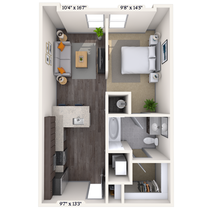 Cadence - Floorplan 1 Apartment Unit: 2400-520Apartment Model: Cadence$1,6631 Bedroom, 1 Bath, 687 sq ftAvailable Now![]()