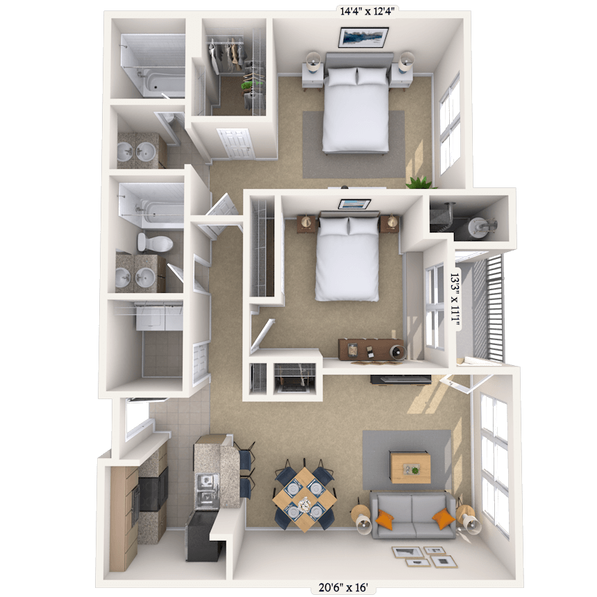 Apartment Unit: 1405Apartment Model: Traditional 1x1 634-792 SF$1,5751 Bedroom, 1 Bath, 792 sq ftAvailable Now![]()