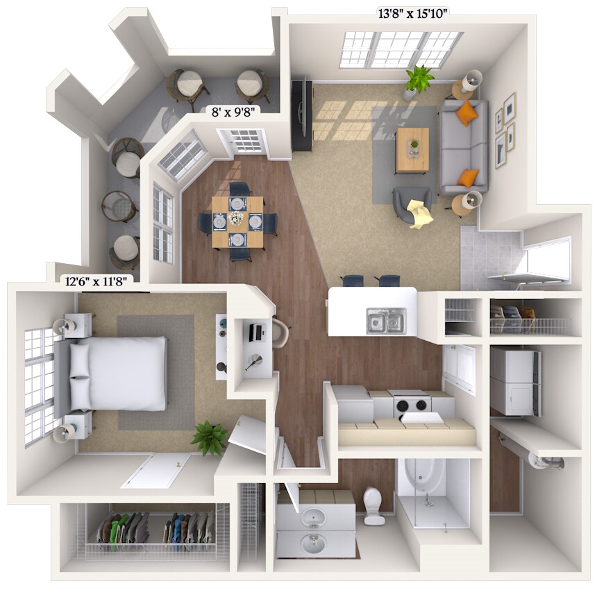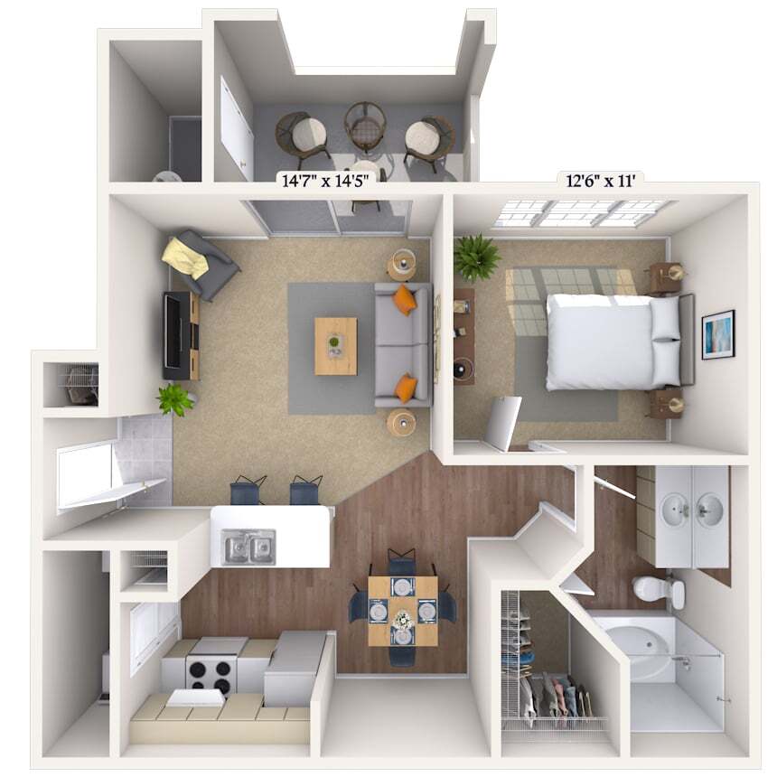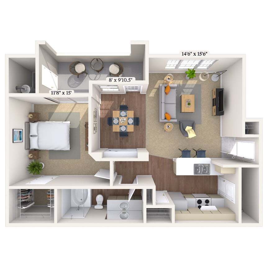 Apartment Model: 11AFrom $1,1881 Bedroom, 1 Bath, 822 sq ftAvailable Now![]()
