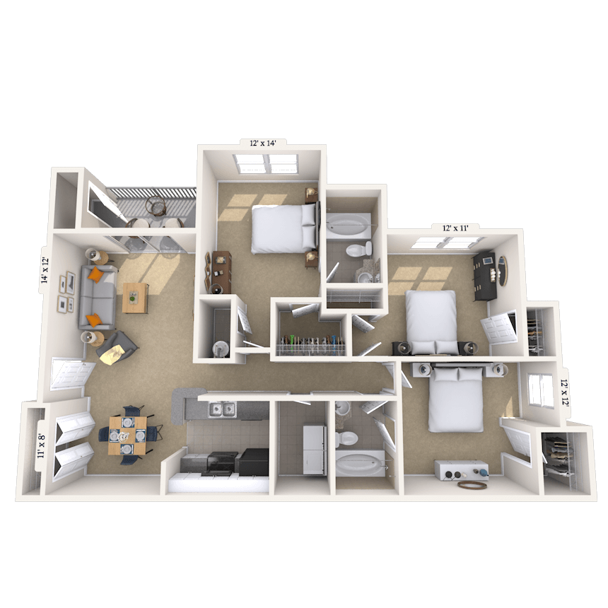 Apartment Model: 32AFrom $1,7483 Bedroom, 2 Bath, 1334 sq ftAvailable December 10, 2025![]()