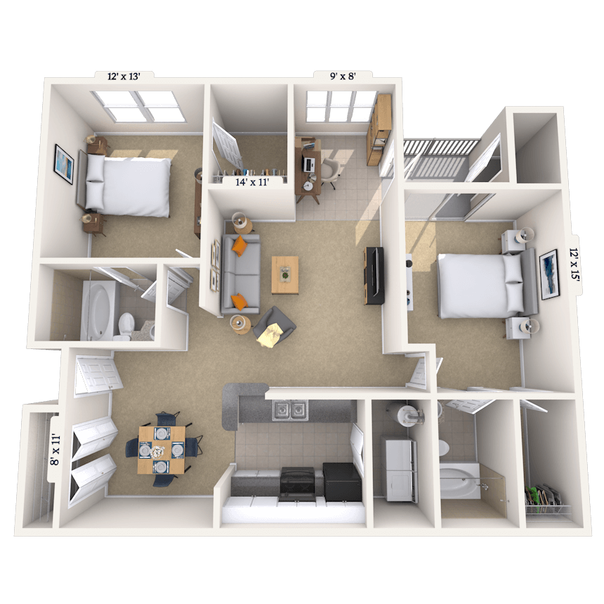 2 Beds, 2 Baths, 1155 sq ftAvailable NowModel Gallery