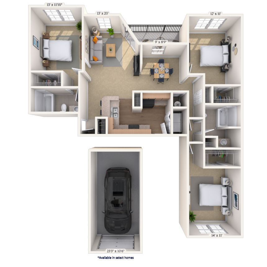 1 Bed, 1 Bath, 902 sq ftAvailable NowLargest 1 BedroomThis is the largest 1 Bedroom at this PropertyModel Gallery