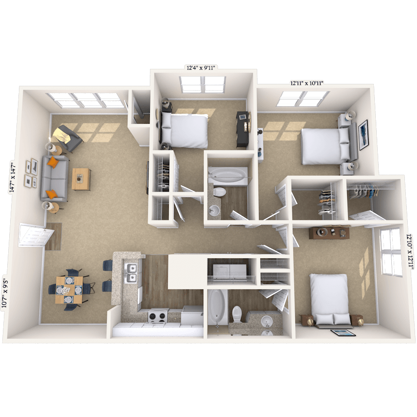 Apartment Model: 11BFrom $1,2681 Bedroom, 1 Bath, 863 sq ftAvailable Now![]()