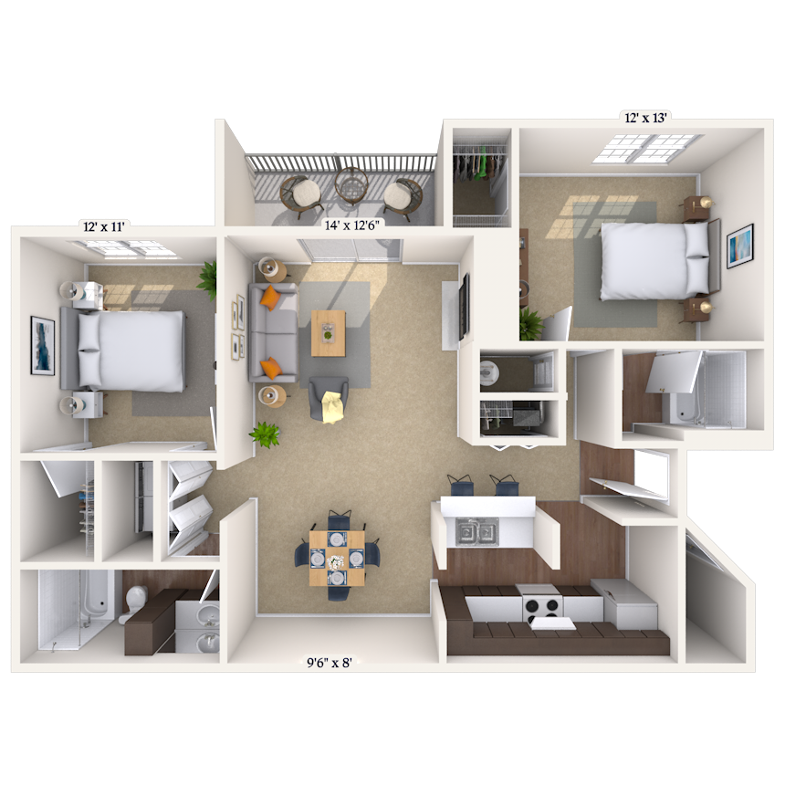 2 Beds, 2 Baths, 1000 sq ftAvailable NowModel Gallery