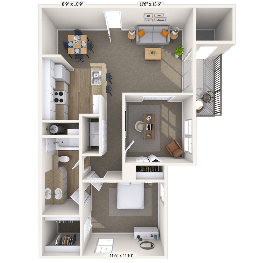 Apartment Model: The AmeliaFrom $1,1731 Bedroom, 1 Bath, 595 sq ftAvailable Now![]()