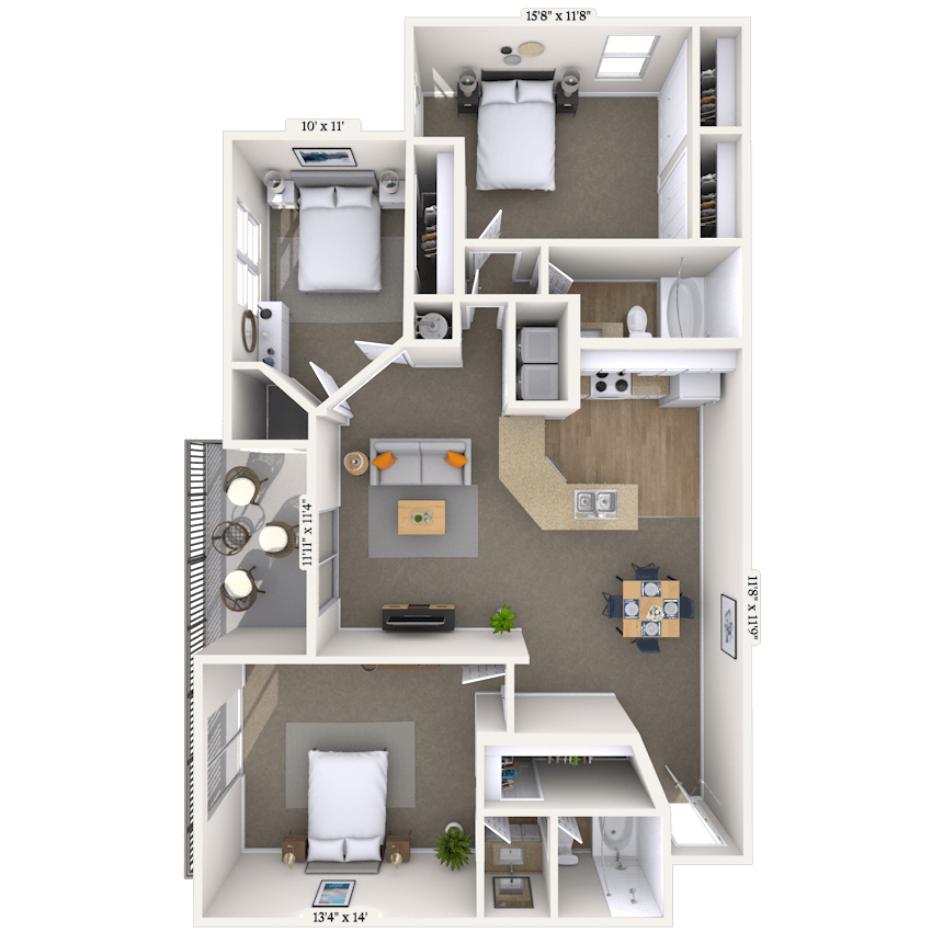 2 Beds, 2 Baths, 1138 sq ftAvailable NowLargest 2 BedroomThis is the largest 2 Bedroom at this PropertyModel Gallery