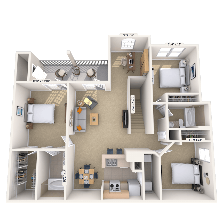 Apartment Model: 11BFrom $8931 Bedroom, 1 Bath, 850 sq ftAvailable Now![]()