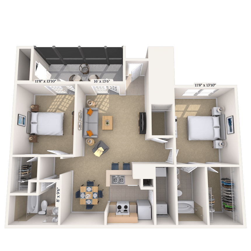 2 Beds, 2 Baths, 1086 sq ftAvailable NowCheapest 2 BedroomThis is the cheapest 2 Bedroom at this PropertyModel Gallery