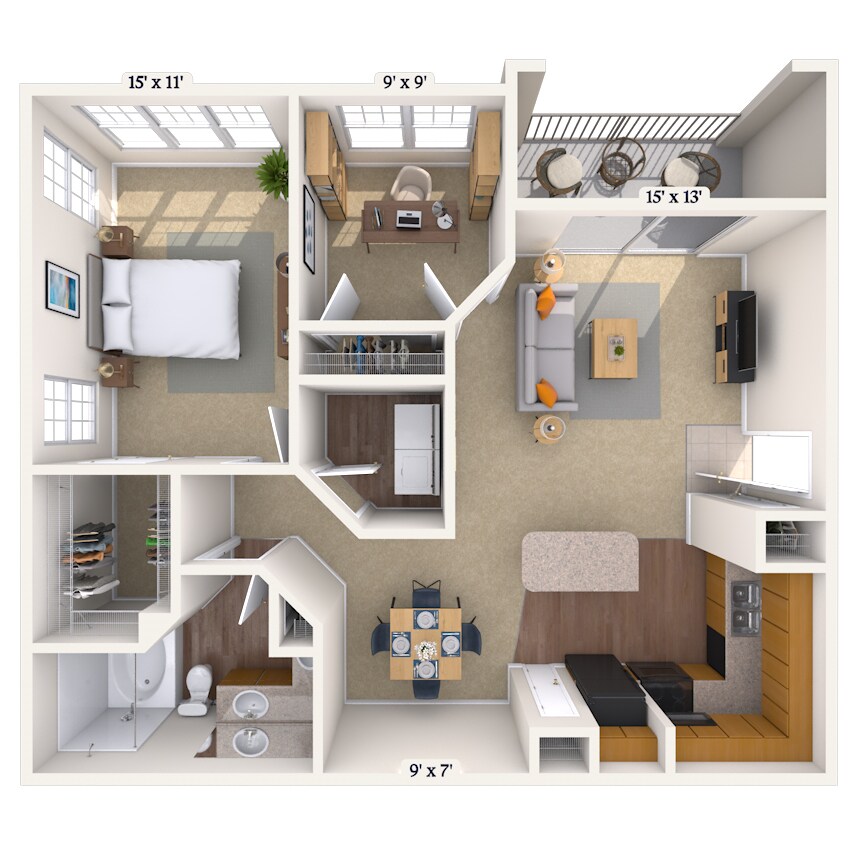 Apartment Model: AlpineFrom $1,2231 Bedroom, 1 Bath, 760 sq ftAvailable Now![]()