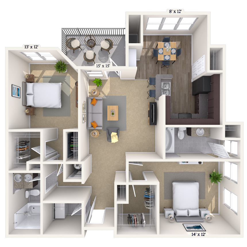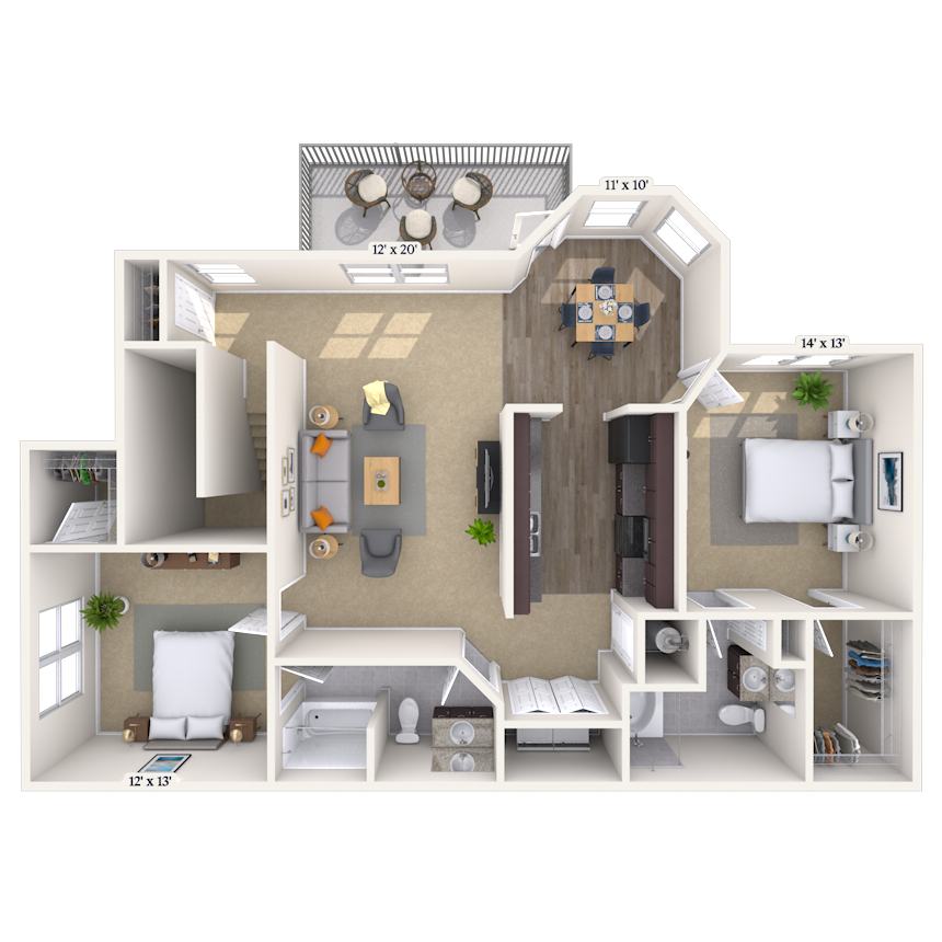 2 Beds, 2 Baths, 1227 sq ftAvailable NowModel Gallery