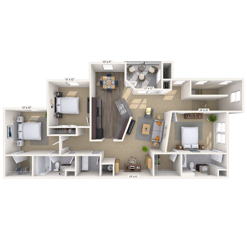Apartment Model: ShireFrom $1,4281 Bedroom, 1 Bath, 696 sq ftAvailable Now![]()