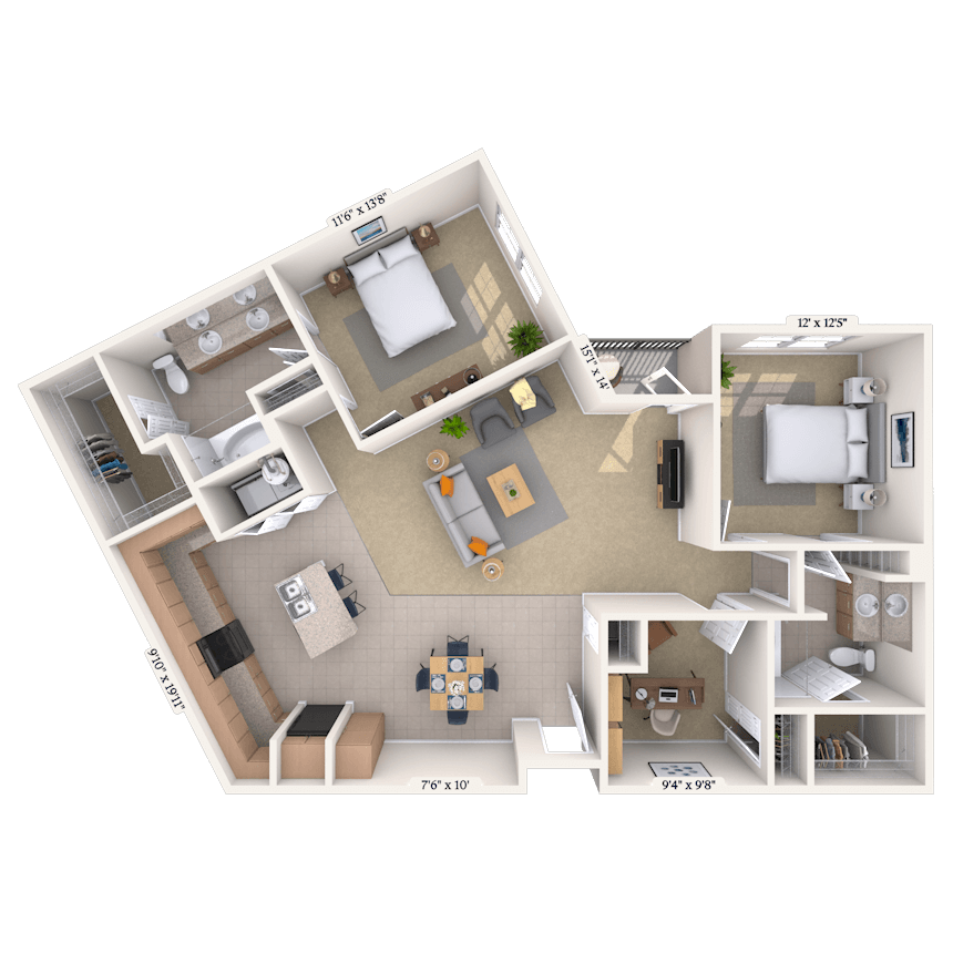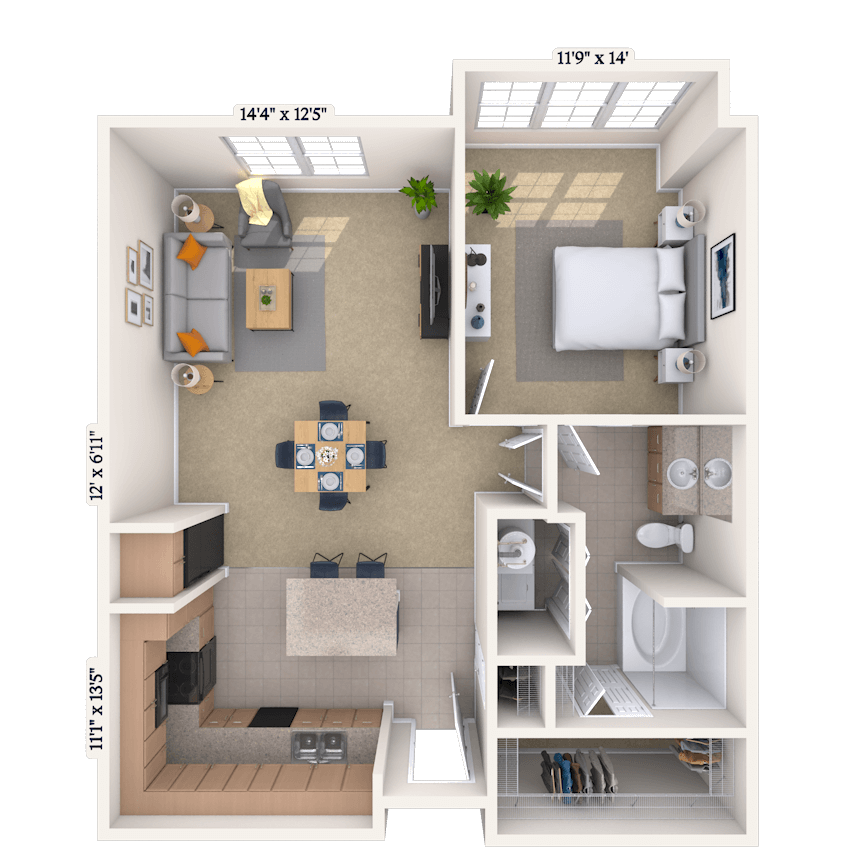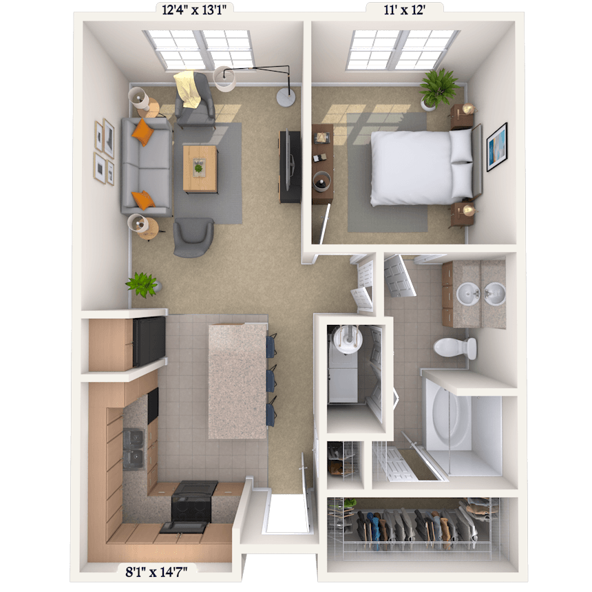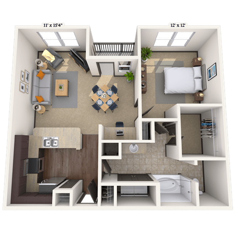 Studio, 1 Bath, 730 sq ftAvailable NowModel Gallery