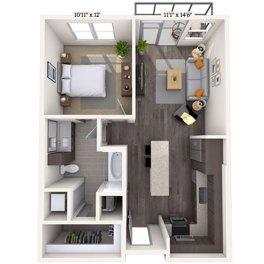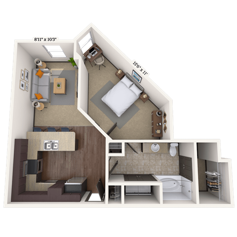 Apartment Model: Studio 0x1 540 SFFrom $1,328Studio, 1 Bath, 540 sq ftAvailable Now![]()