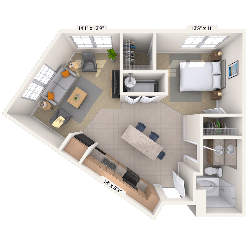 Studio, 1 Bath, 714 sq ftAvailable NowAvailability Details