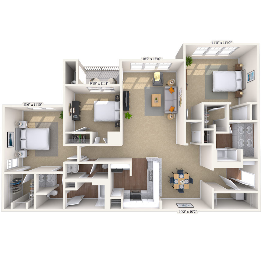 Apartment Model: Traditional 1x1 835-957 SFFrom $1,5751 Bedroom, 1 Bath, 852 sq ftAvailable Now![]()