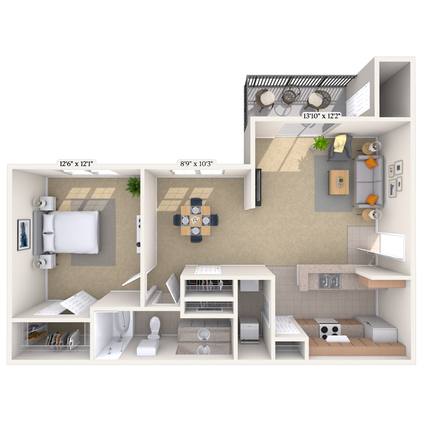 1 Bed, 1 Bath, 750 sq ftAvailable NowLargest 1 BedroomThis is the largest 1 Bedroom at this PropertyModel Gallery