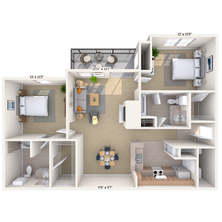 Apartment Model: The OrchidFrom $1,1331 Bedroom, 1 Bath, 639 sq ftAvailable Now![]()